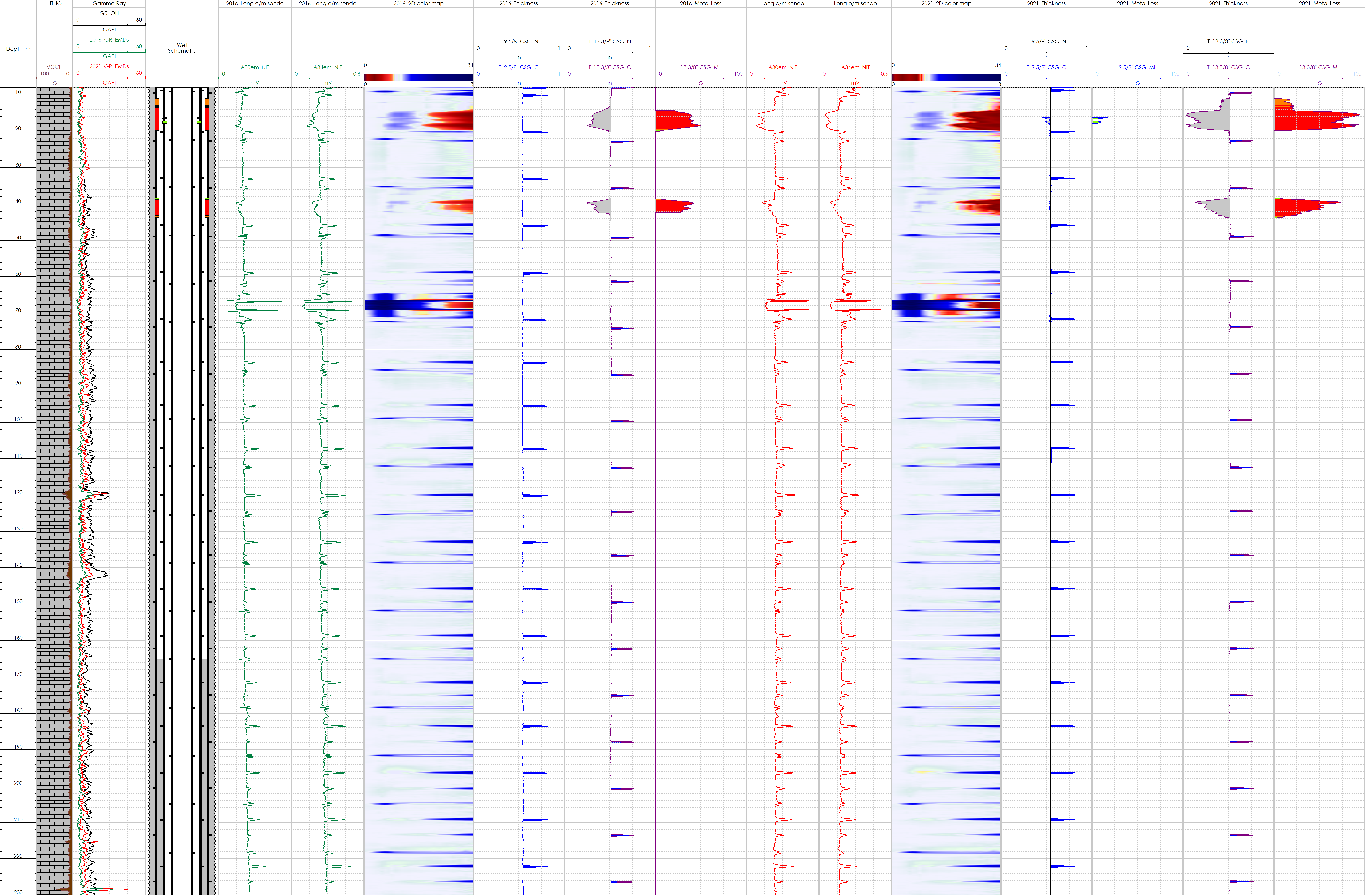In addition, metal loss had migrated to the 9 5/8” casing at a depth of 16 m and metal loss was in the range of 13-14%.