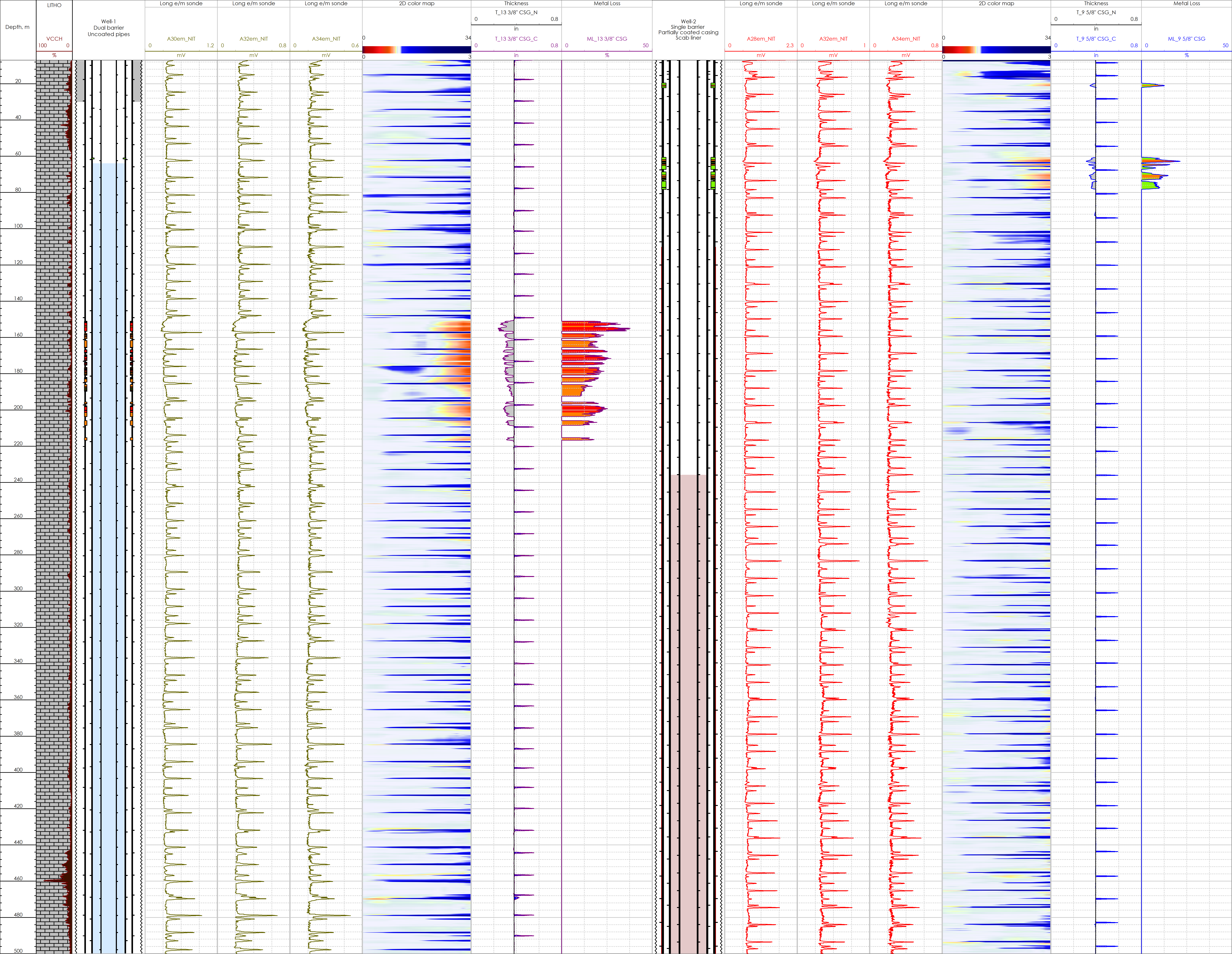 The Pulsed Electromagnetic Tool is a non-destructive corrosion logging tool which was designed to measure the individual wall thickness of concentric pipes in a single run. The latest generation of this tool provides quantitative wall thickness measurement for up to 4-5 barriers.