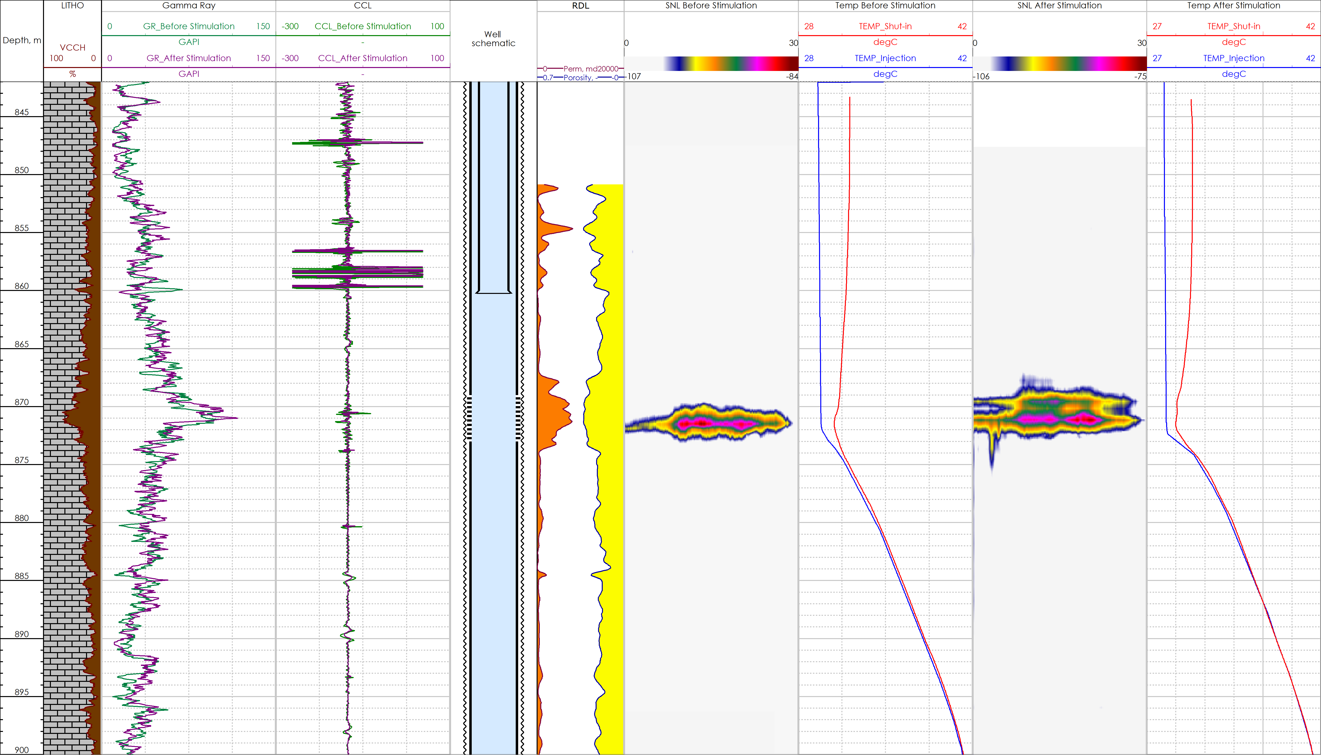 One example of when acoustic logging was conducted to check acid stimulation efficiency is shown below: